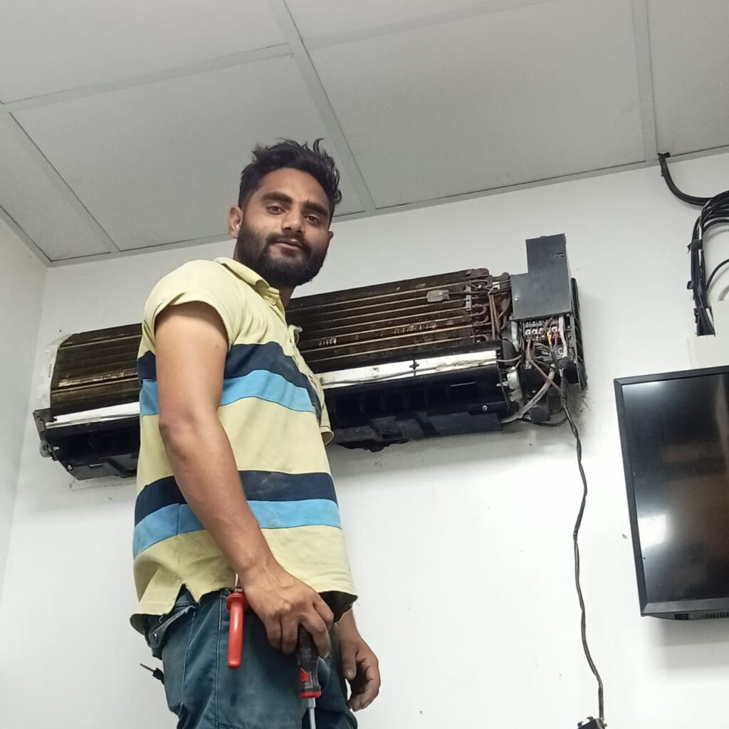 يعمل فنيونا على إعادة كفاءة التبريد وضمان التشغيل السليم للجهاز.